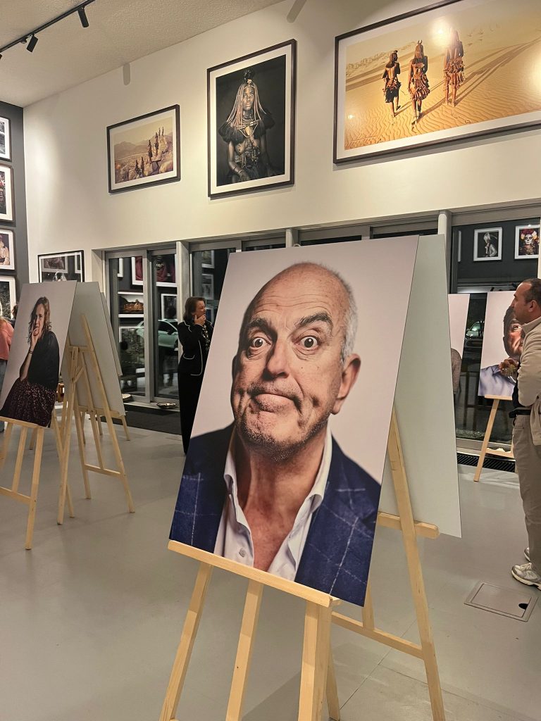 Tussen foto’s van Jimmy, van mensen van over de hele wereld stonden veertien schildersezels met Michels portretten. Het was een indrukwekkend geheel.